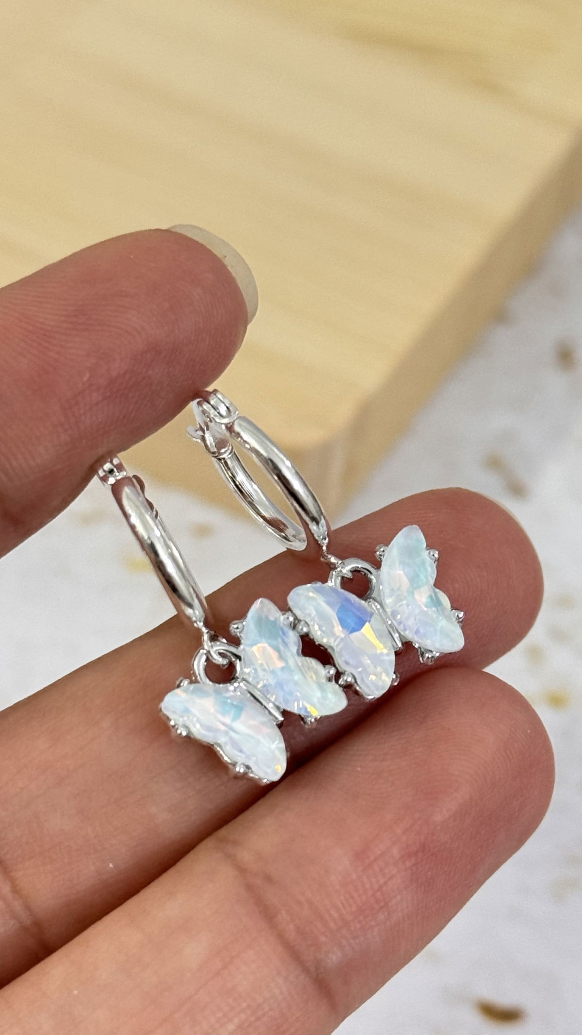 Argollas Mariposa Piedra Lunar AB