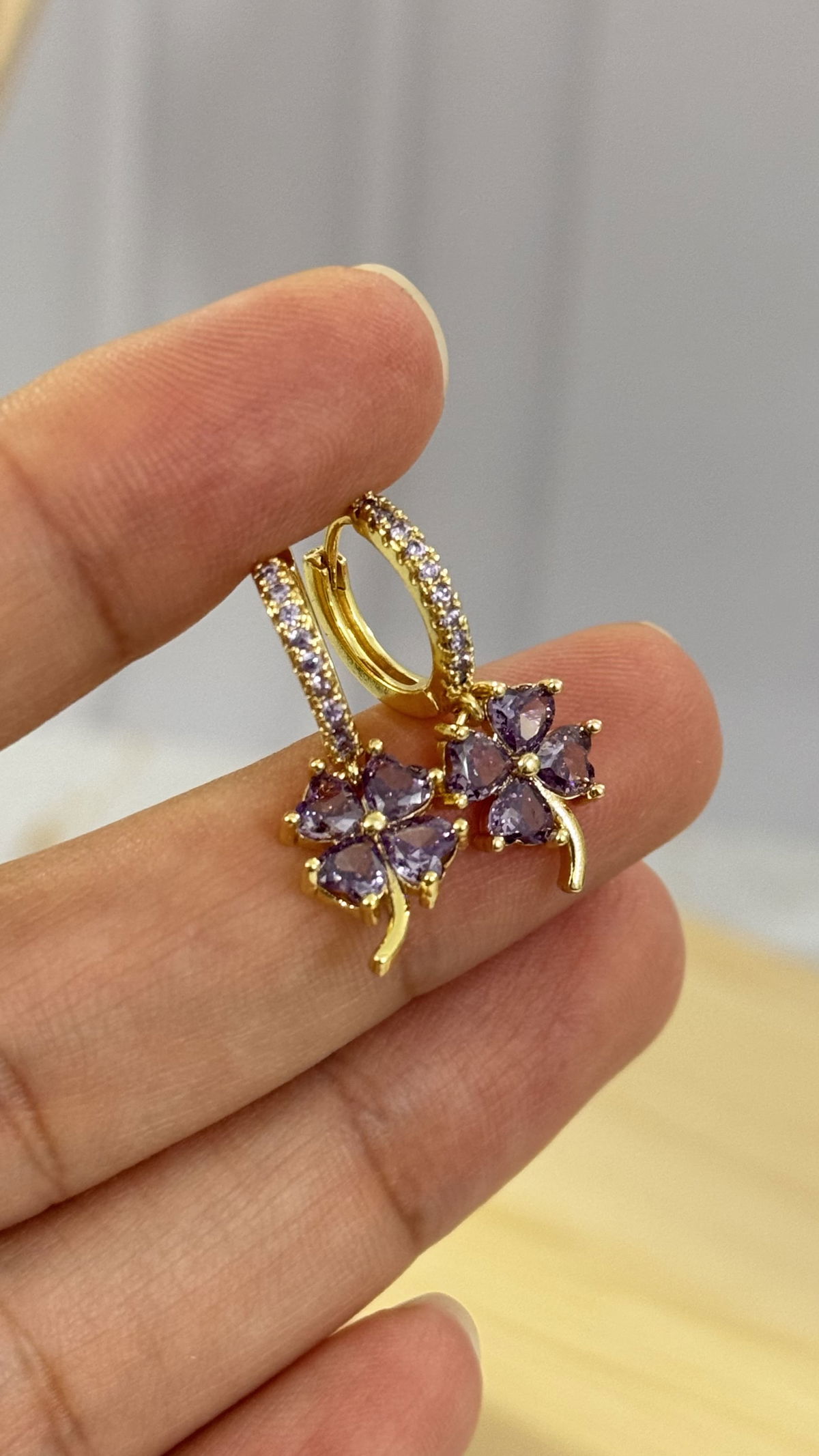 Aros Argollas Trebol Lila Dorado