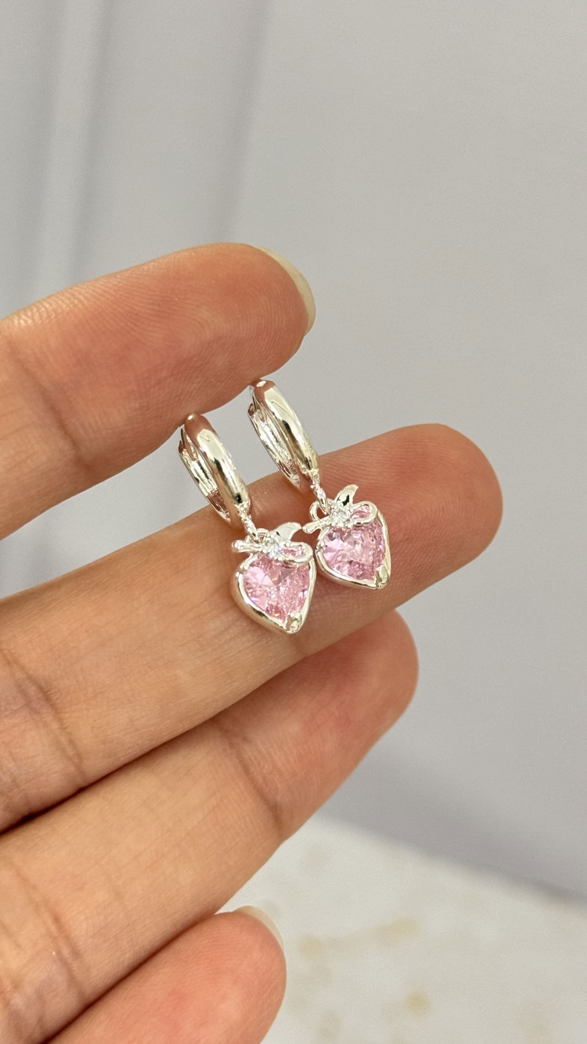 Aros Corazon Con Moño Rosa