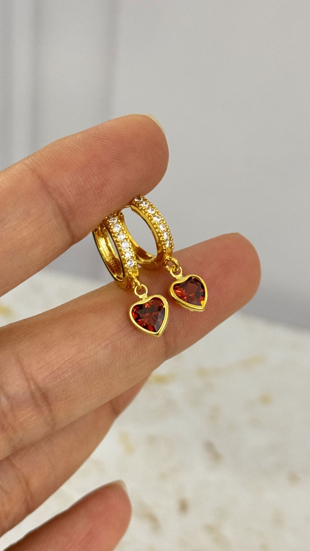Aros Corazon Rojo Dorado