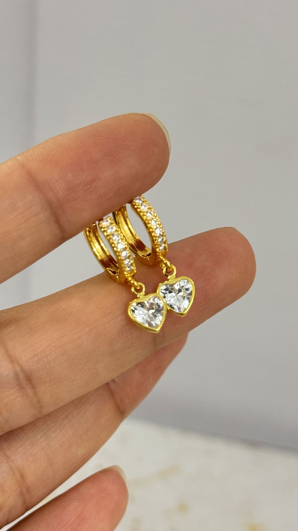 Aros Corazon Transparente Dorado