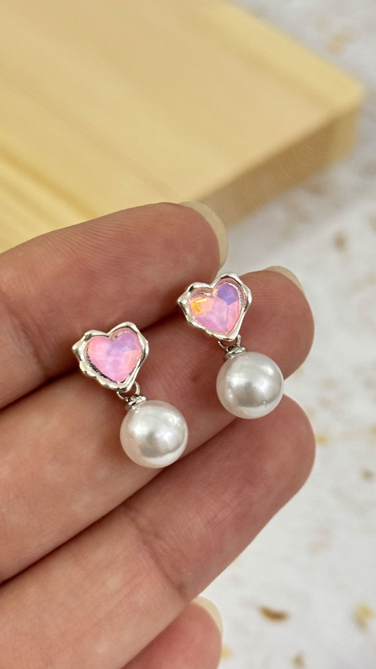 Aros Corazon y Perla Plateado