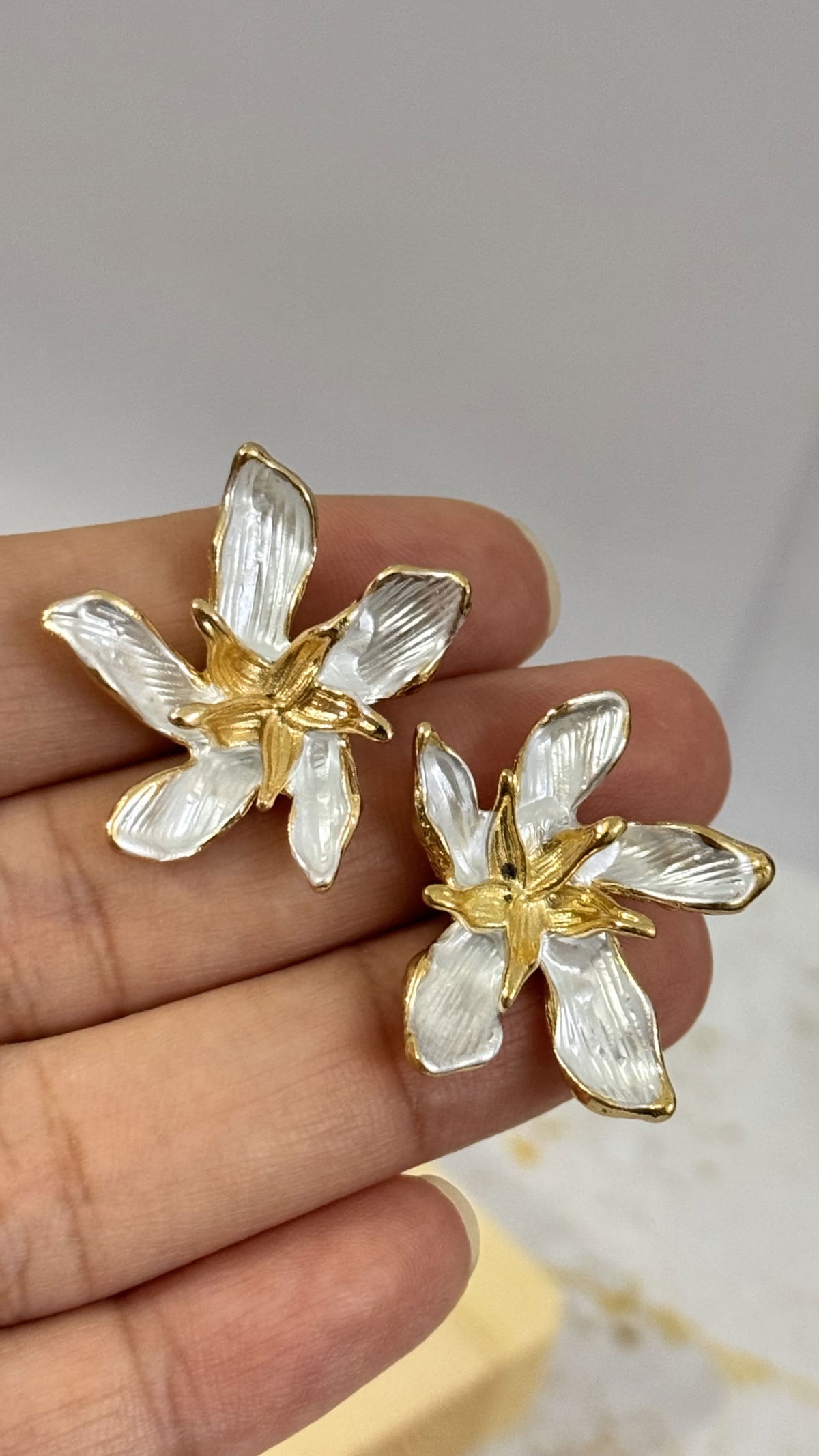 Aros Dorados Flor Blanca