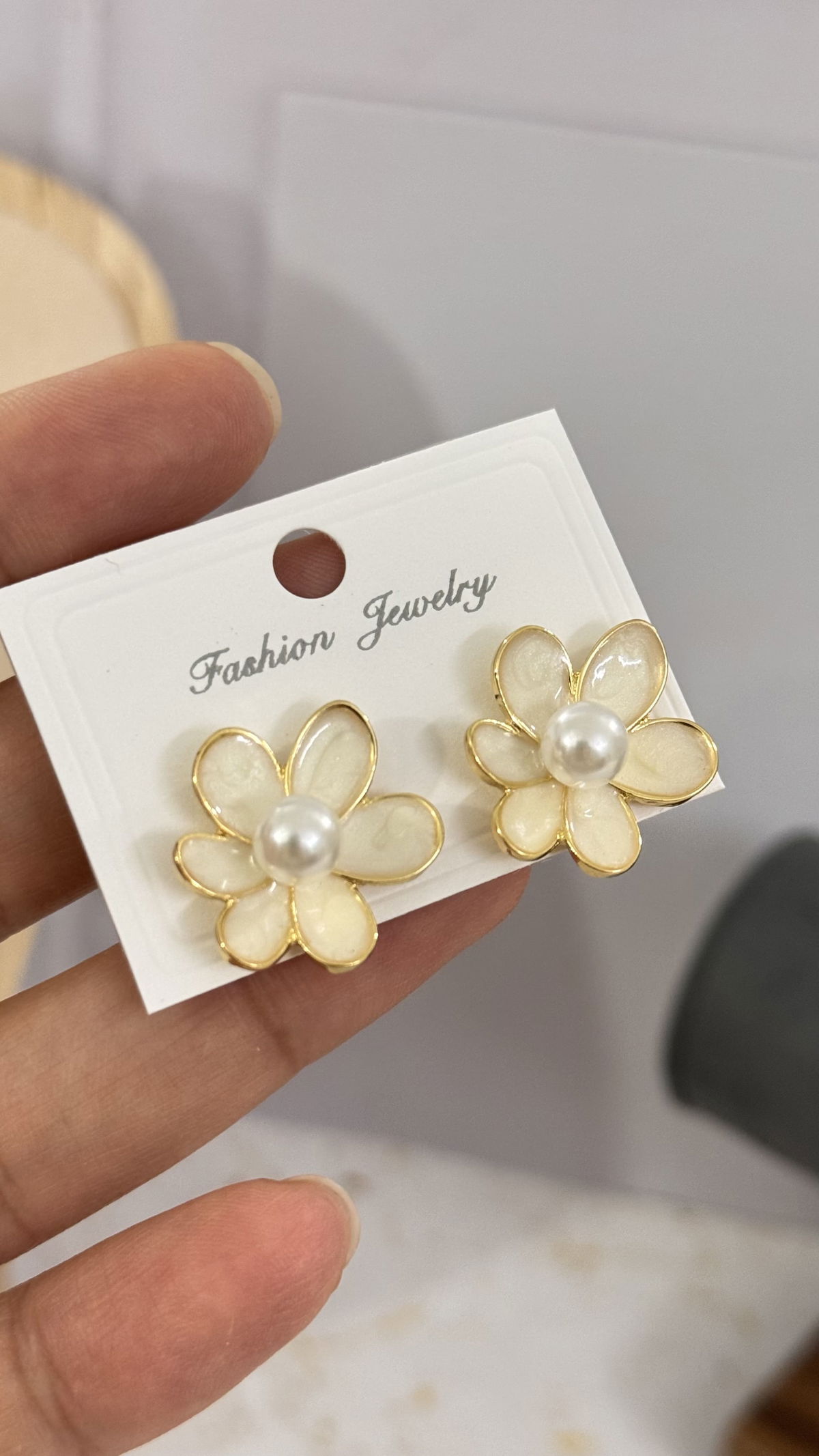 Aros Flor Con Perla Blanco Dorado