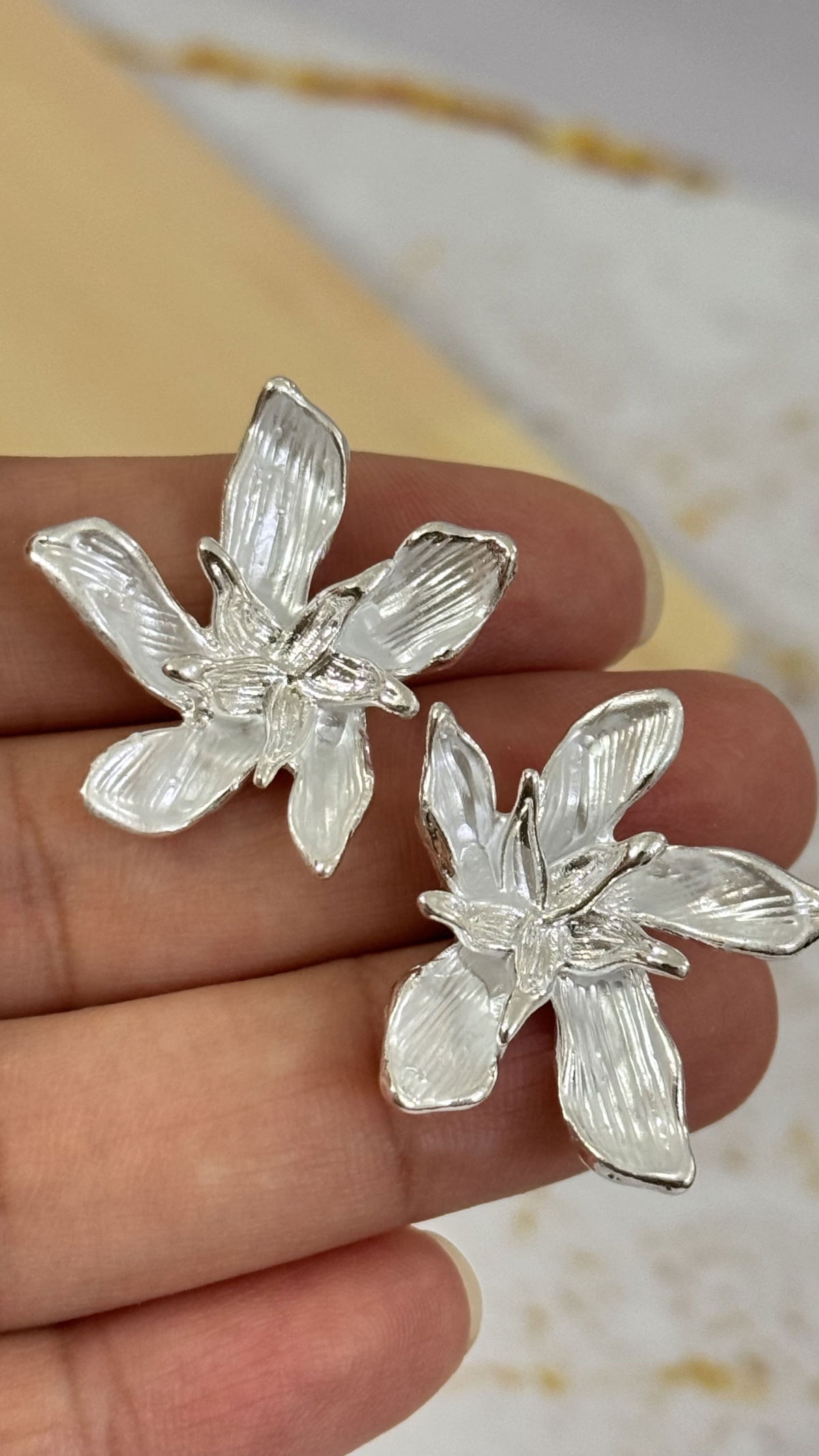 Aros Plateados Flor Blanca
