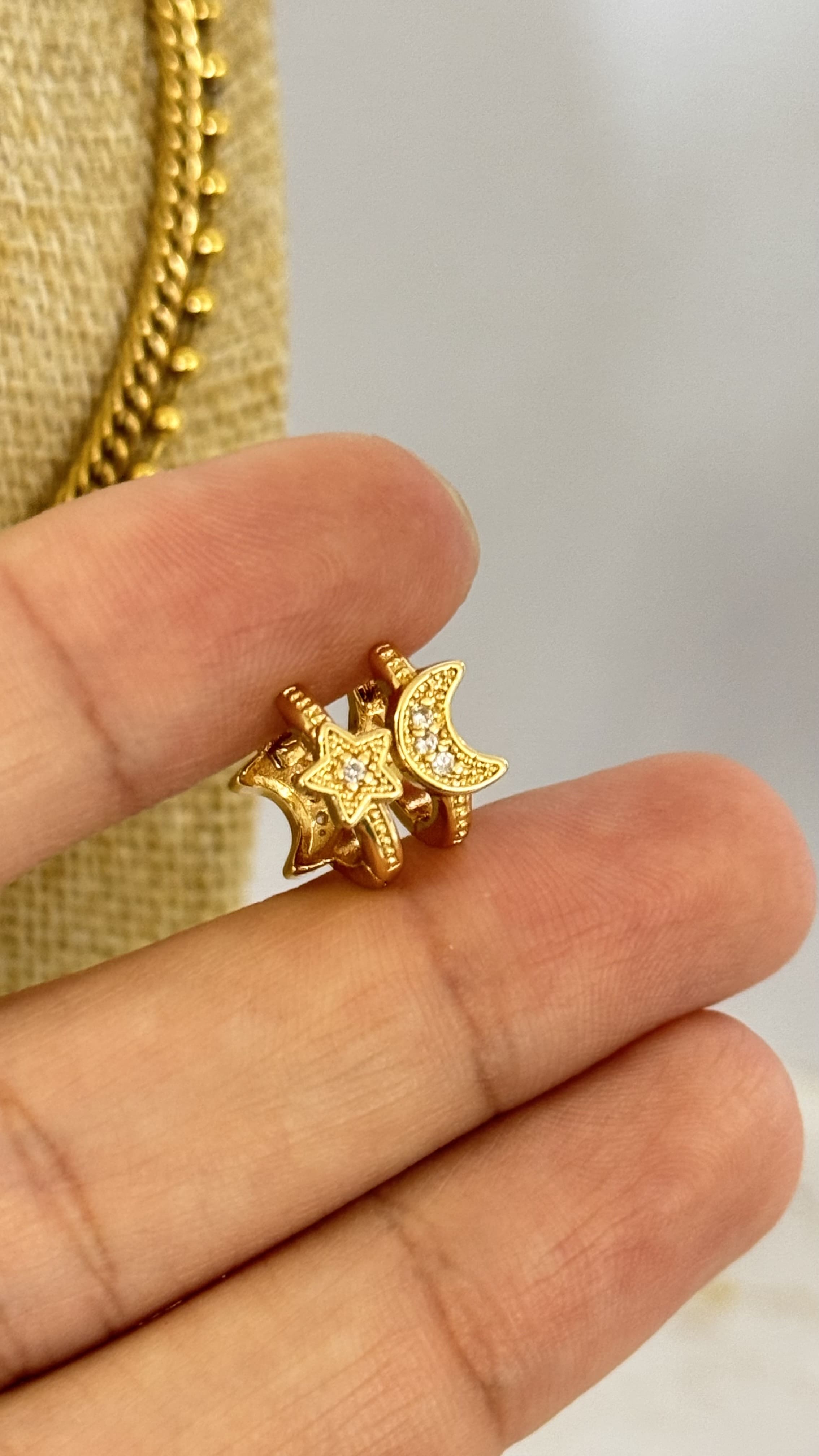 Argollitas Luna y Estrella Dorada