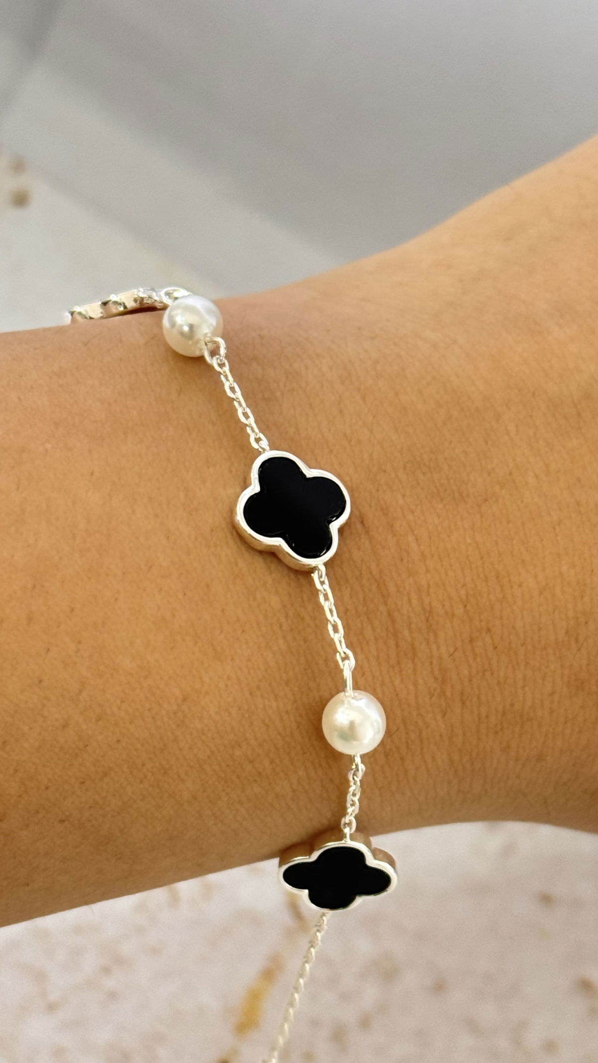 Pulsera Trebol Con Perlas Negro