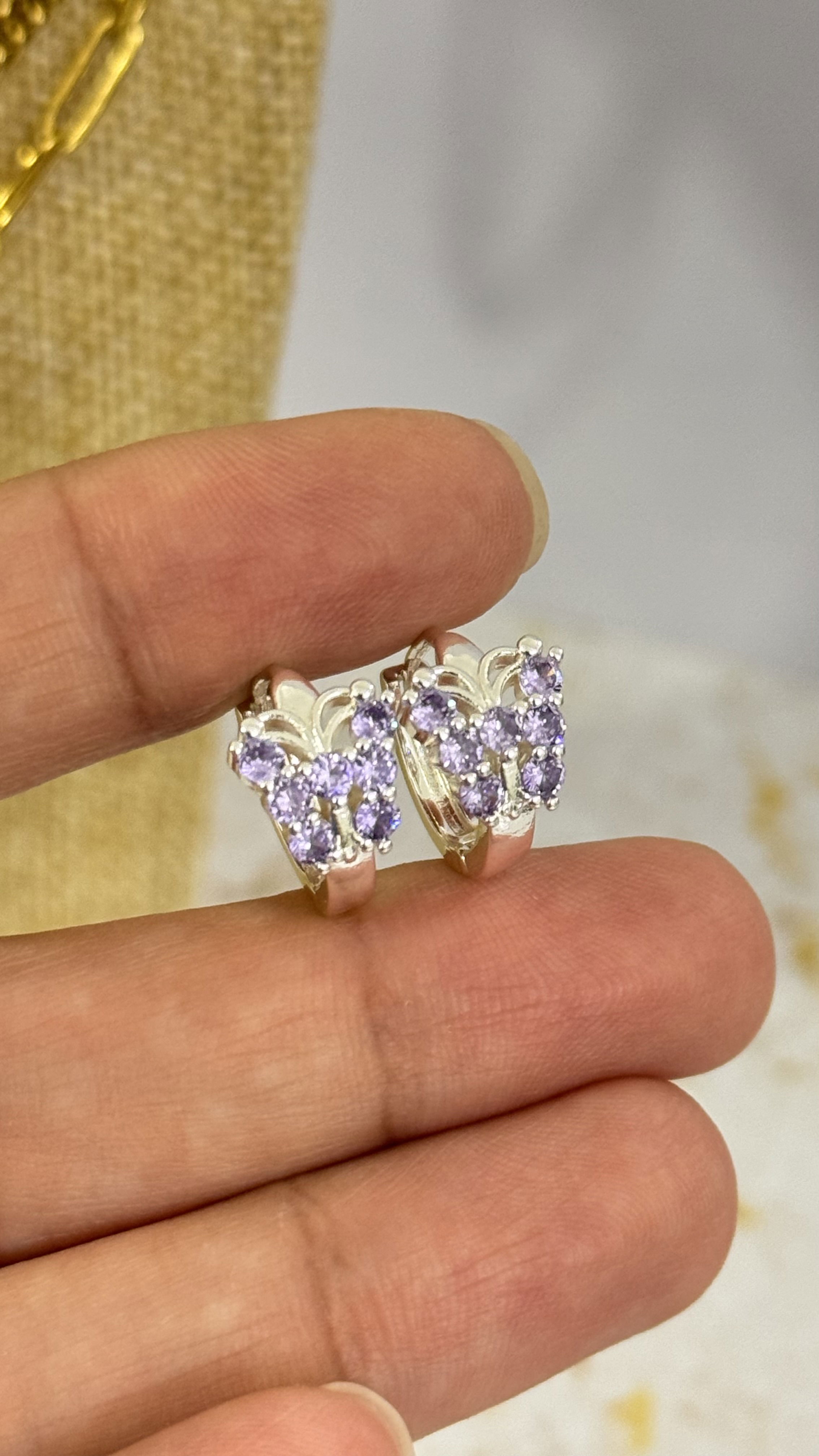 Argollitas Plateadas Mariposa Lila