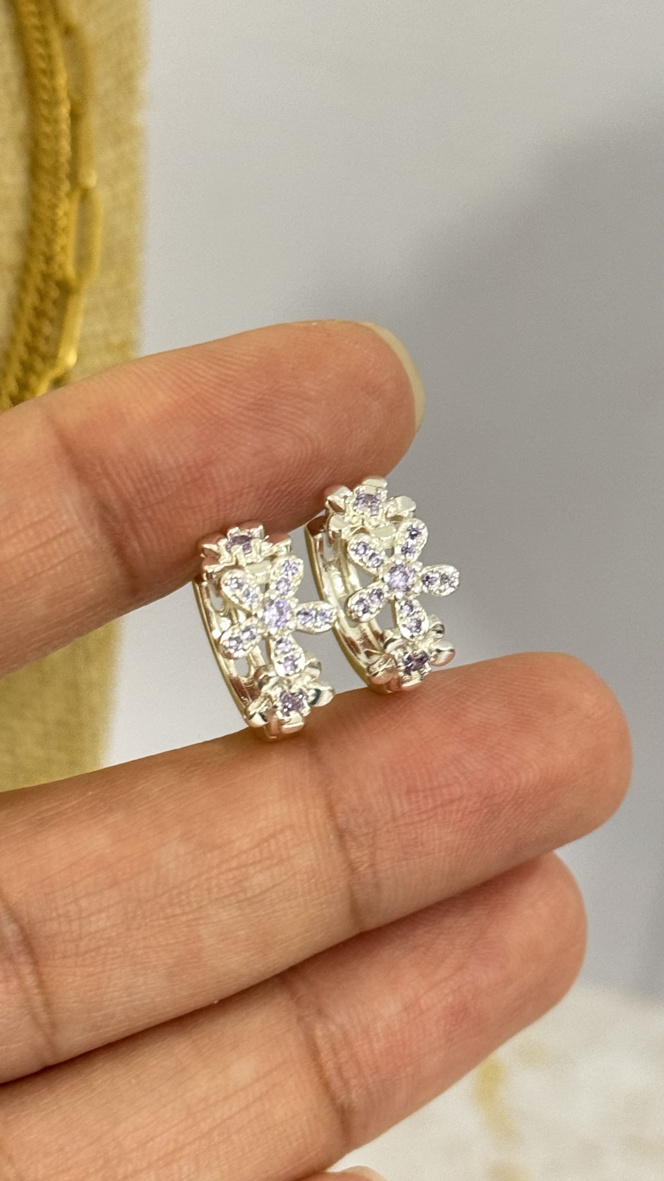 Argollitas Plateadas Flor Lila