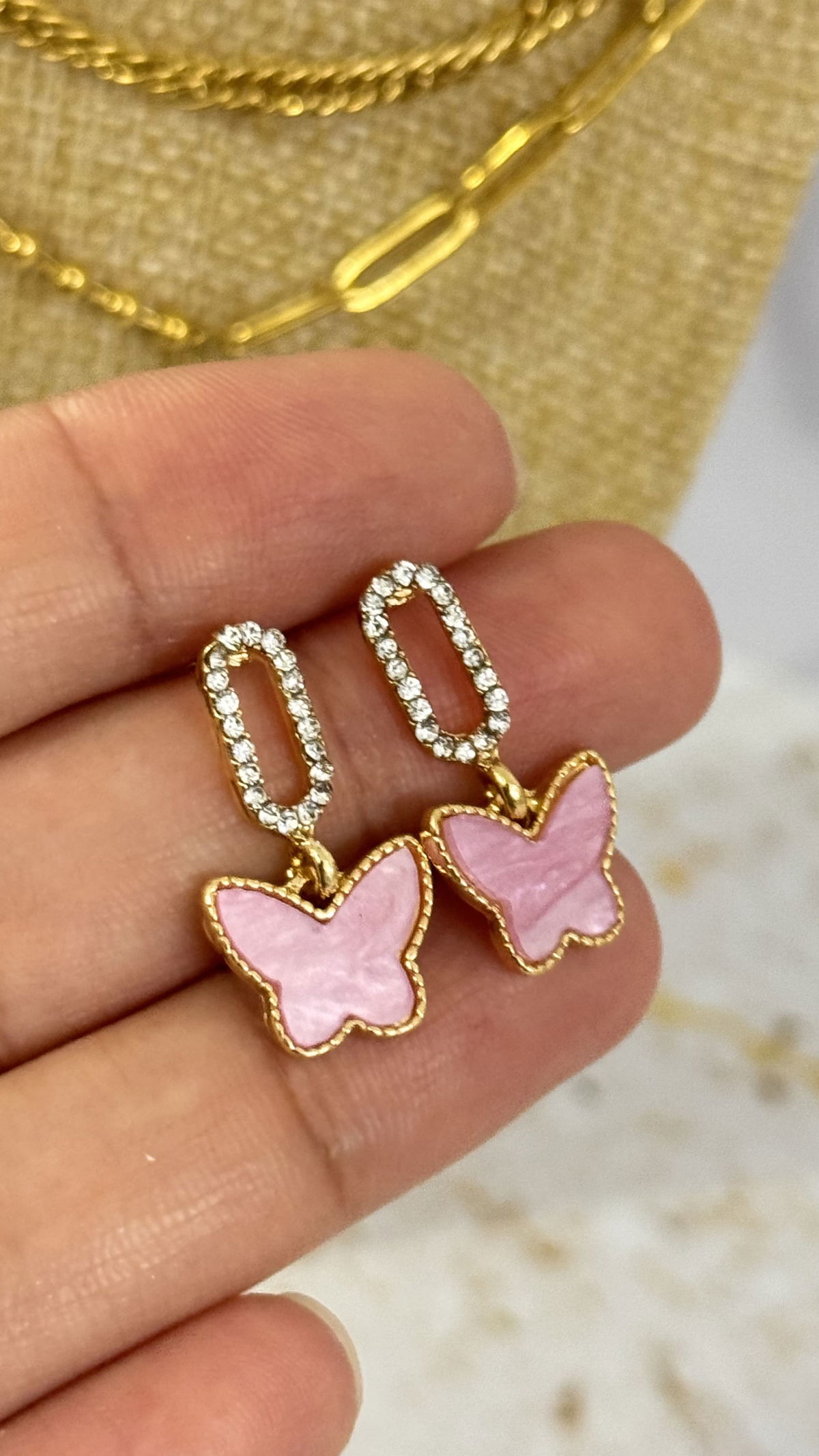 Aros Mariposa Dorado Rosa