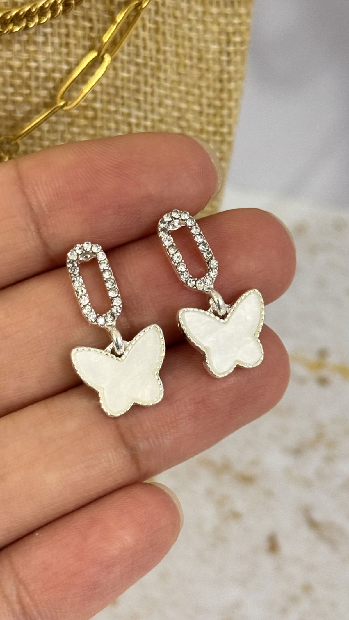 Aros Mariposa Plateado Blanco