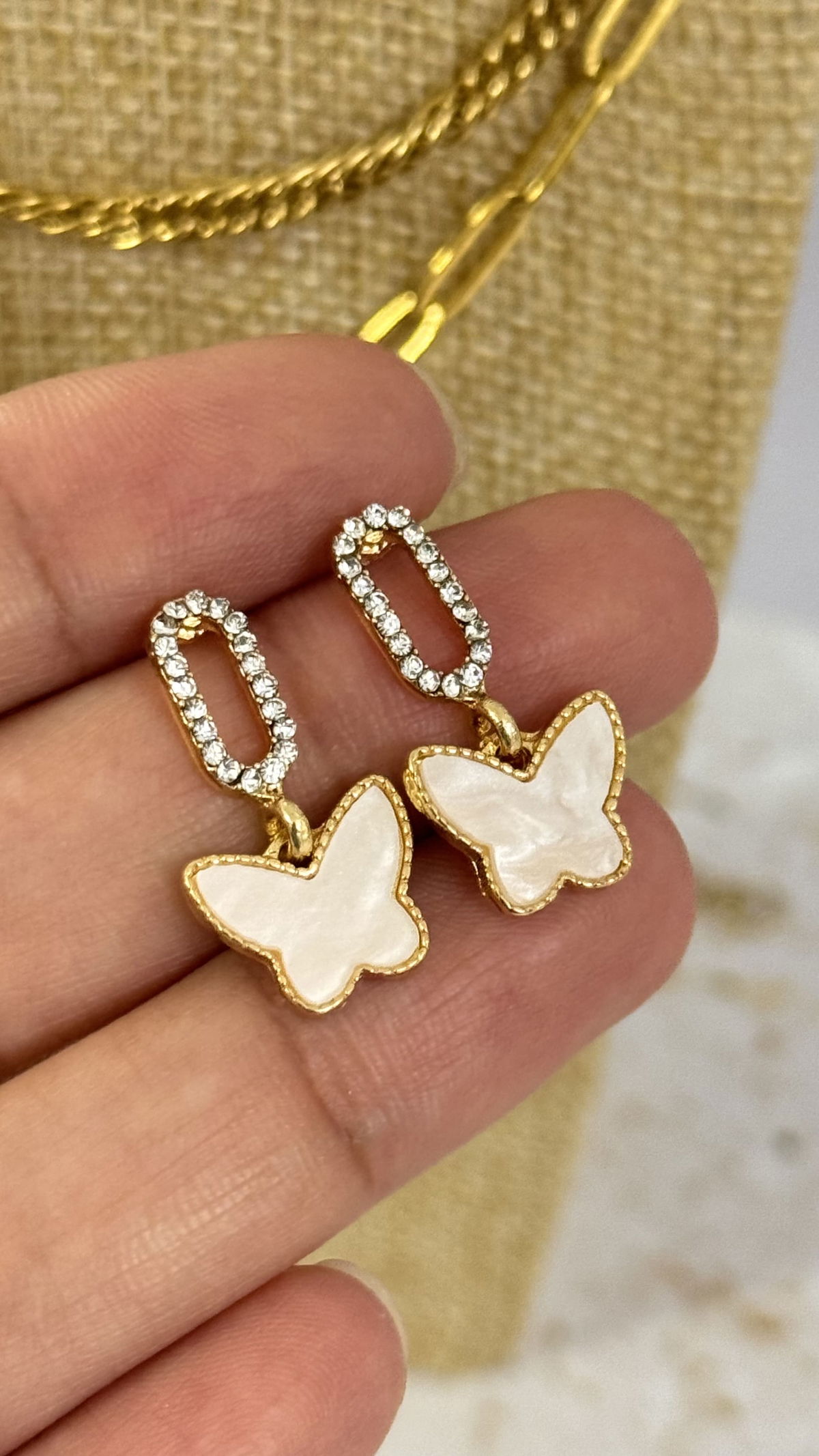 Aros Mariposa Dorado Blanco