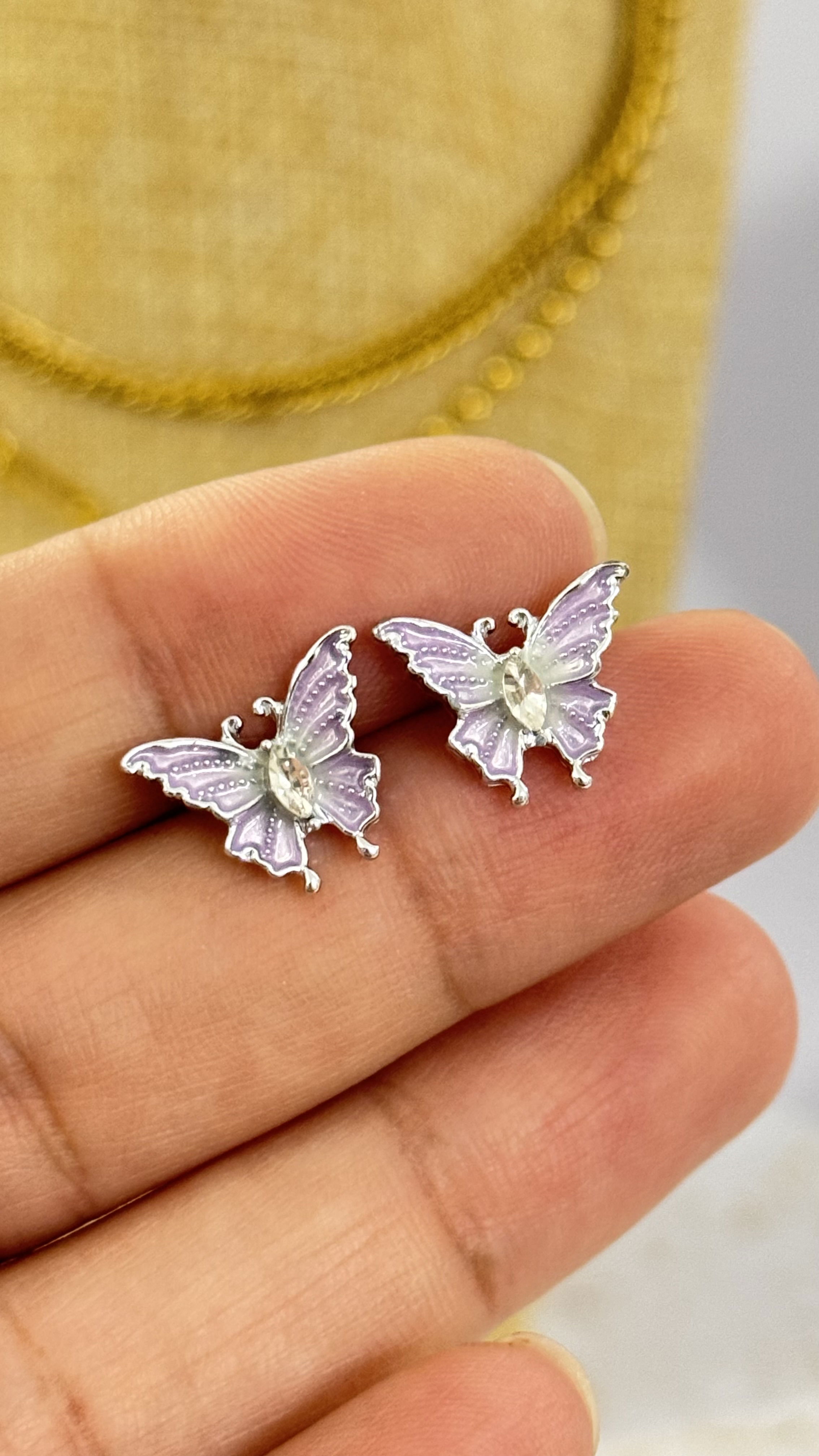 Aros Plateados Mariposa Lila