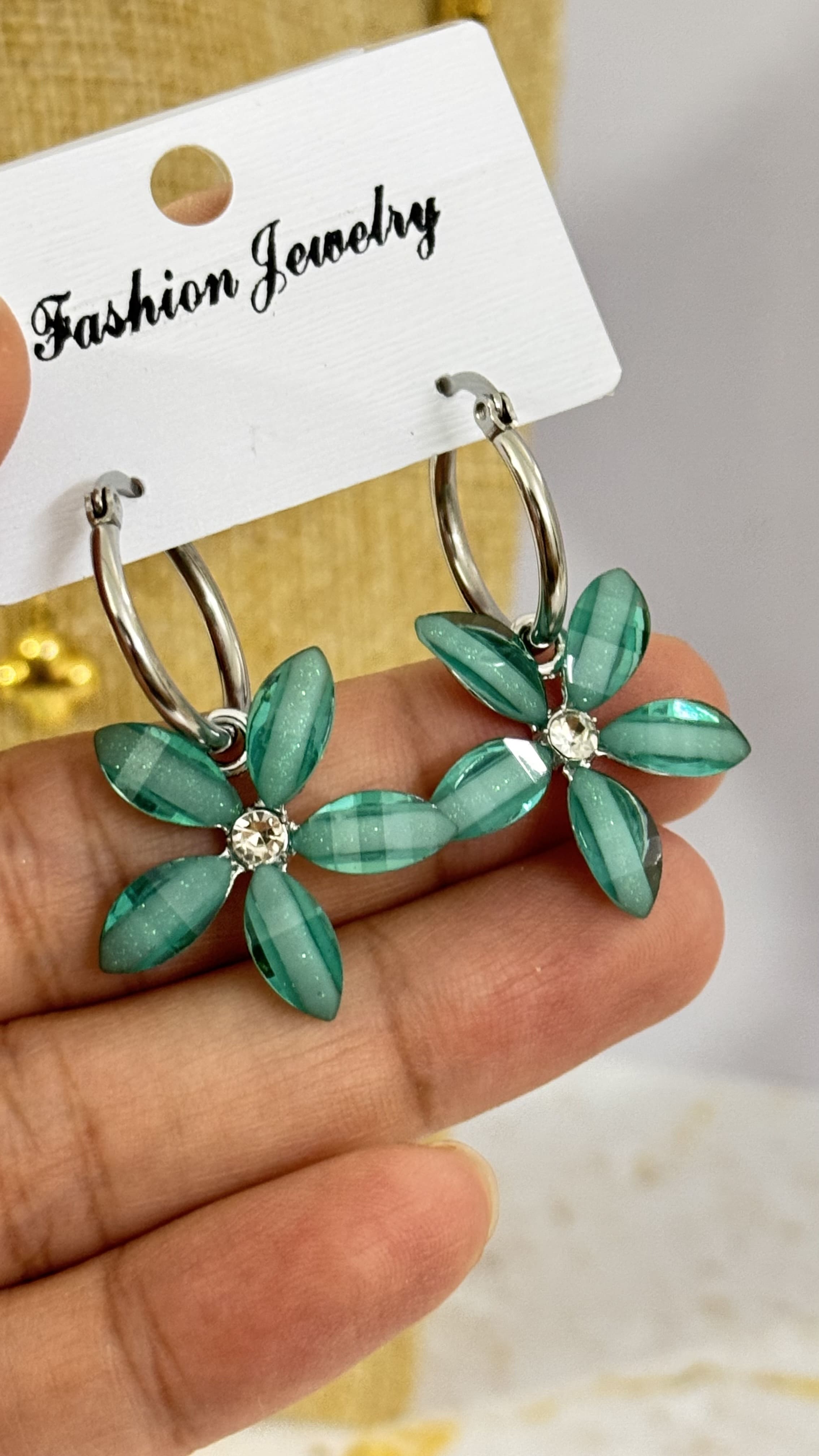 Argollas Flor Cubic Verde AQ